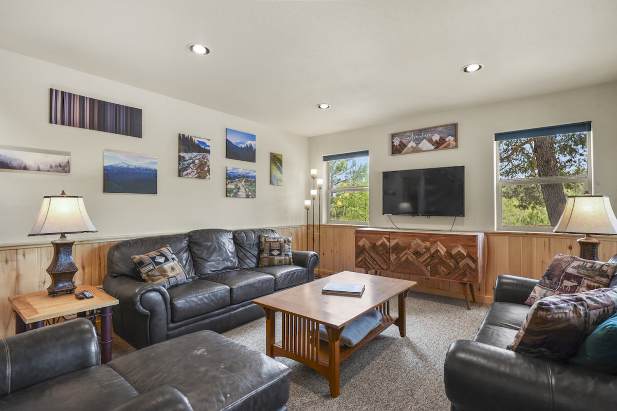 🪟 Spettacolari finestre a tutta altezza con vista sulle montagne e sul laghetto 🏔️ Ampia terrazza con vasca, vista sulle montagne e sul laghetto, tramonti, osservazione delle stelle 🛏️ 3 camere da letto + soppalco; 1 letto matrimoniale grande, 2 letti matrimoniali grandi, 2 letti singoli 🛁 2 bagni completi ciascuno con doccia e vasca 🎲 Loft: il sogno di un bambino con giochi, PacMan, lettini per tende 🏞️ Facile accesso a escursioni di livello mondiale, parchi statali, pesca, ATV/UTV, casinò, Wolf Sanctuary, North Pole e altro ancora.