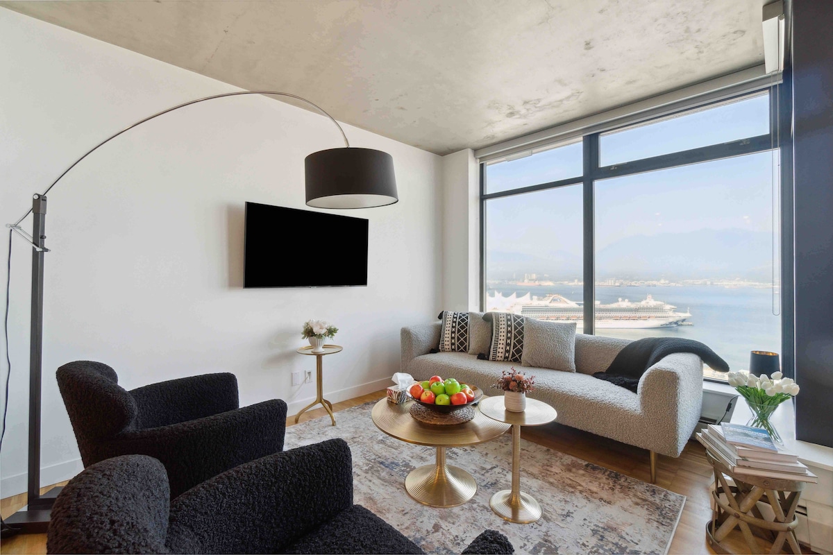 Benvenuto nella tua residenza d'angolo a Gastown, dove le finestre a tutta altezza si estendono attraverso il soggiorno, la cucina e entrambe le camere da letto, mettendo in mostra lo skyline di Vancouver da ogni angolazione. Due camere da letto matrimoniali con bagni privati. Un balcone privato con vista sullo skyline del centro. A pochi passi da BC Place, Vancouver Convention Centre, Canada Place, Rogers Arena e Waterfront SkyTrain Station. Parcheggio sotterraneo custodito e spazio di lavoro dedicato inclusi.