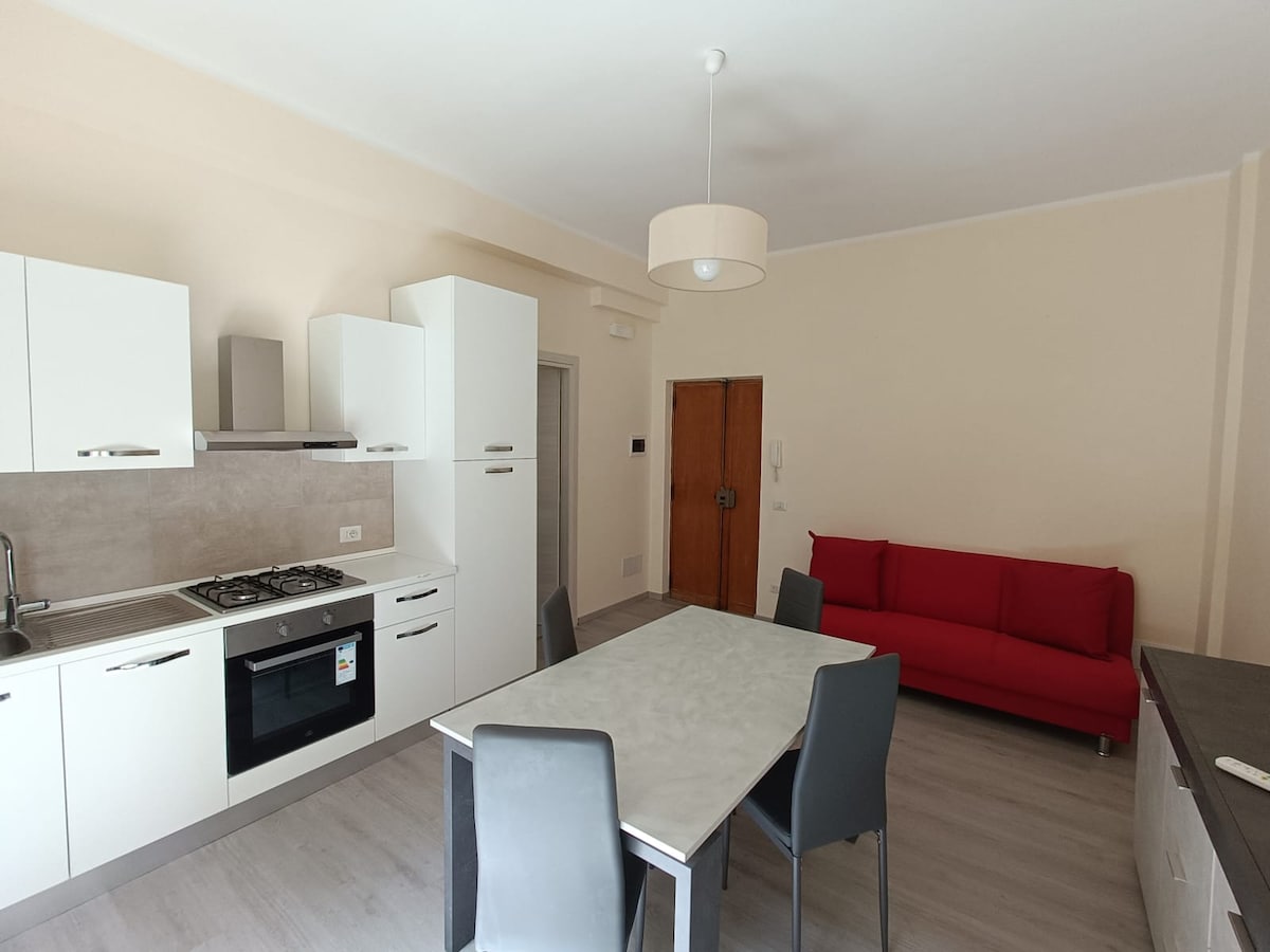 Moderno appartamento al primo piano di un edificio recentemente ristrutturato. Luminoso e accogliente, offre un ampio terrazzo privato, ideale per una colazione al sole o un aperitivo all’aperto. Perfetto per un soggiorno breve, unisce comfort e praticità. La posizione è ottima per chi arriva con il treno, con la stazione e la caserma a soli 5 minuti a piedi. L'appartamento dispone di una cucina attrezzata con utensili base e, grazie all'ascensore, l'accesso è comodo e senza difficoltà.