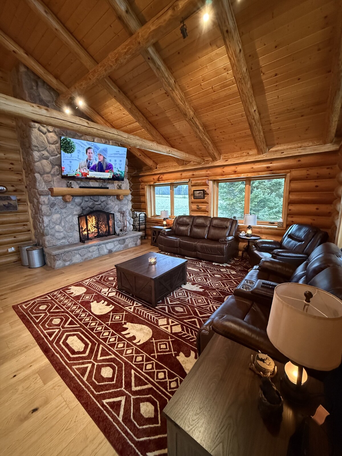Enjoy the Northwoods of Wisconsin in this stunning log cabin. From snowmobiling to kayaking to ice fishing take in all that Armstrong Creek, WI has to offer. There is a private snowmobile trail that leads you to the 100 Mile Snow Safari trail system, from there you have access to 100s of miles of beautiful trails. When you arrive back from a long day on the trails or from the ice kick back in front of a fully custom fire place and enjoy a hot cup of coffee while watching your favorite movie.