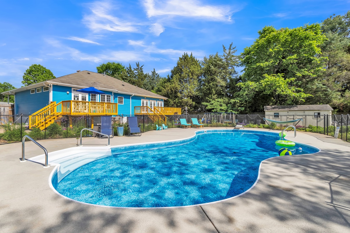 *Leggi la descrizione completa dello spazio: questa suite è completamente privata, ma è anche il livello inferiore della nostra casa.* Accogliente ranch in mattoni con ampio piano inferiore recentemente ristrutturato e vista sul laghetto. Questa suite privata per gli ospiti include una camera da letto con bagno completo, lavatrice e asciugatrice, soggiorno con divano letto estraibile, TV, angolo cottura, zona pranzo, area lettura, piccola sala giochi per bambini e uno spazio ufficio. A meno di 20 minuti in auto dal Baptist Hospital e dal centro di Winston, a 25 minuti da HP e a 30 minuti da GSO.