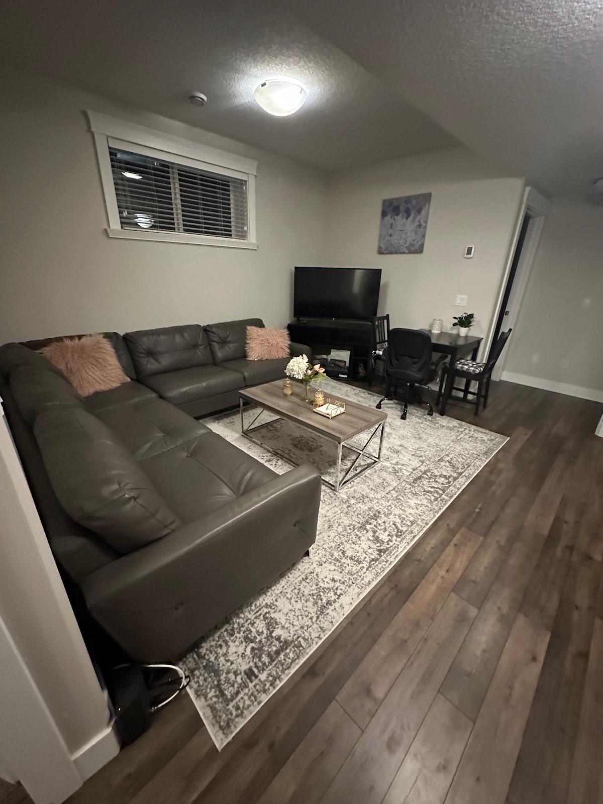Un appartamento seminterrato molto spazioso e pulito in un'ottima posizione. Ingresso indipendente, lavanderia e caldaia. Offre un facile accesso all'autostrada e dista circa 2 minuti a piedi dalla fermata dell'autobus per i lavoratori delle sabbie bituminose. Internet e TV veloci Telus che includono Netflix, BeIN Sport e FUBO TV in abbonamento, nel caso in cui tu sia un appassionato di calcio. La cucina ha tutto: frigorifero, piano cottura elettrico, forno a microonde, cuociriso, bollitore elettrico, macchina per il caffè, griglia, tostapane, frullatore e pentole, piatti, utensili e altri oggetti essenziali adeguati.