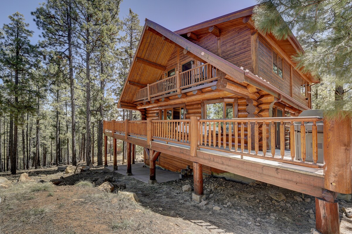 Elk Horn Cabin is a exquisite 2600 ft² air conditioned log cabin with majestic views of the San Francisco Peaks; 10 mins from Downtown Flagstaff on 5 acres of breathtaking, secluded, tranquil grounds; Surrounded by thousands of tall, whispering Ponderosa Pines. Meandering paths lead to Observatory Mesa, kid's play areas & wandering adventures! * 30 mins to Snowbowl * Private access to Flagstaff Urban Trail System * Finished basement w/ 75" TV, Air Hockey, Table Tennis, Shuffleboard & more!