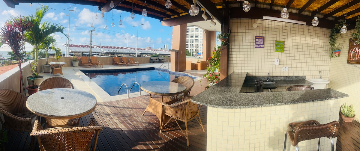 Apartamento frente para o mar, muito bem equipado e super seguro, posição estratégica na beira mar próximo a tudo, praias, barracas, supermercados, restaurantes, feirinha da cidade, mercado central, centro artesanato, shopping. Situado no coração da festa do Réveillon, frente aterro da cidade, no condomínio se pode aproveitar para estar no meio da festa do final do ano assistindo ao show e aos fogos de artifícios de forma super confortável. O apartamento é no bairro mais nobre da cidade Venha!