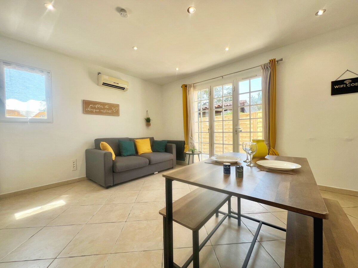 Benvenuti in questo alloggio indipendente di 30 m², situato a Fos-sur-Mer, a soli 1,8 km dalla spiaggia e a 500 m dal centro della città. Questo moderno e funzionale T2 è perfetto per un soggiorno in coppia, da soli o per lavoro. Alloggio composto da una camera da letto separata con cabina doccia, un luminoso soggiorno con cucina completamente attrezzata, aria condizionata reversibile, posto auto gratuito e giardino privato di 10 m². Sono forniti lenzuola e asciugamani Non fumatori Animali non ammessi