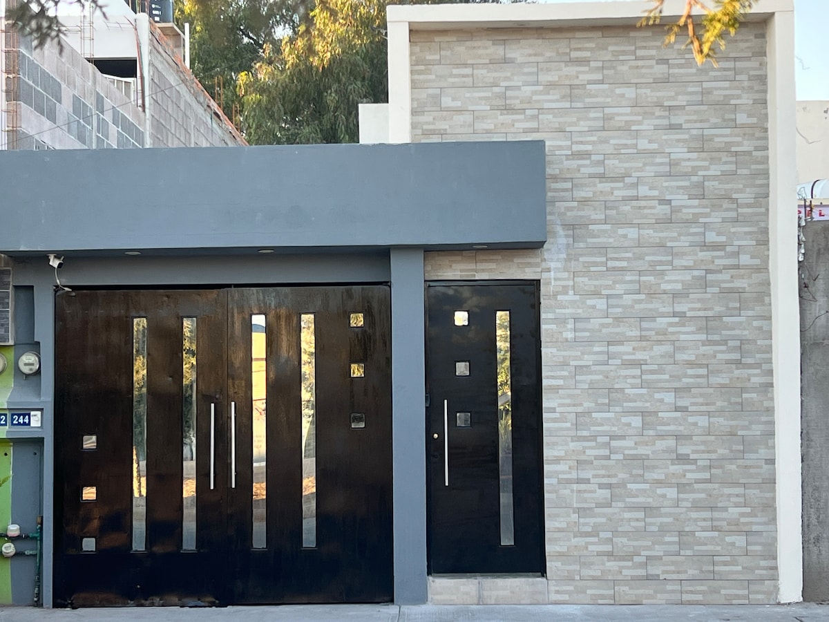 Rilassati in questo loft tranquillo, elegante e spazioso, al piano terra, garage con cancello elettrico, chiave digitale, ingresso autonomo, comodo letto queen, ampio armadio, ampio bagno, divano letto, schermo 55” cucina completamente attrezzata, frigorifero, airfryer, ecc. E per lavorare, Internet ad alta velocità e una grande scrivania. A pochi passi Oxxo e Brotgarten. A 2 isolati a piedi c'è la Avenida Carranza, a circa 4 isolati molte opzioni: “tacos el pata,”Vips, B. De Obregón, chiesa, Starbucks, palestra.
