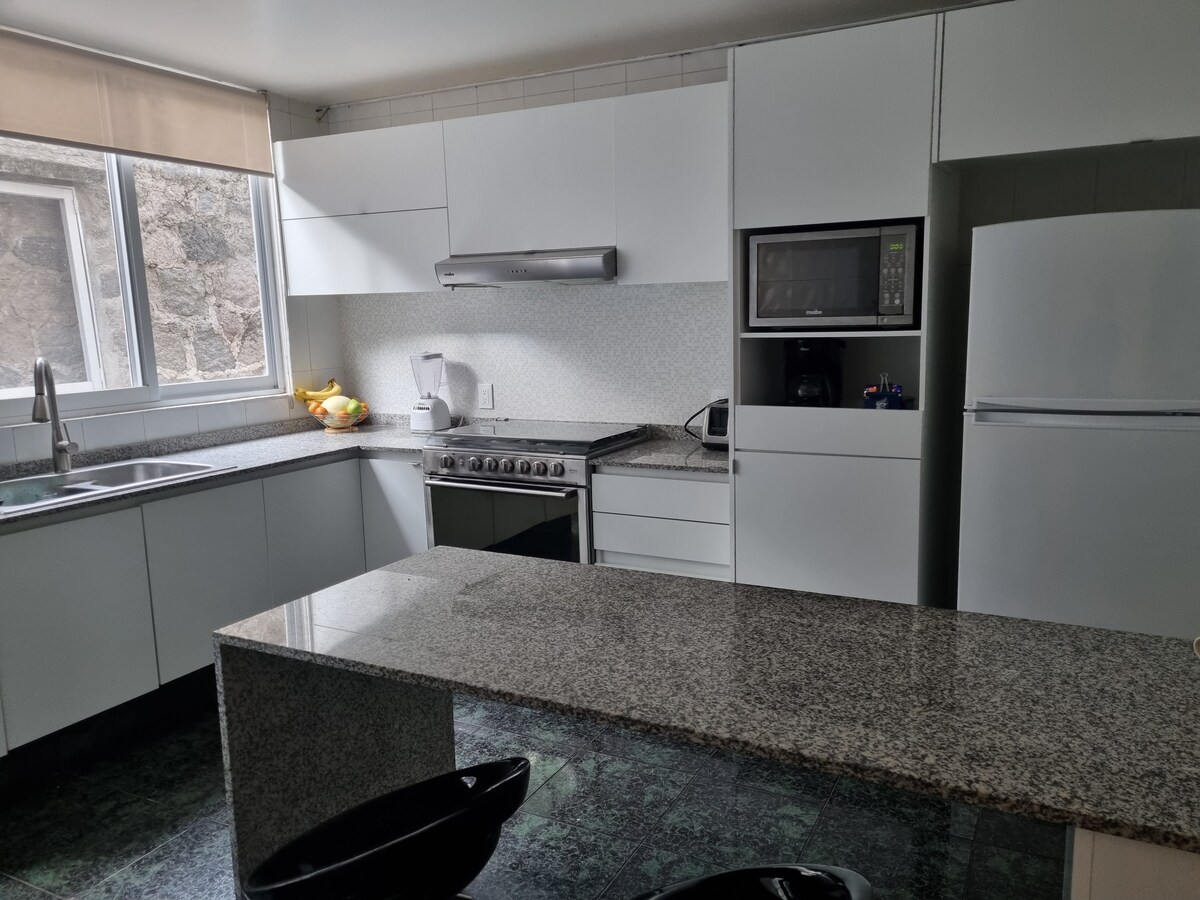 Goditi un weekend eccezionale, mangia in giardino, prendi un caffè sulla sedia sotto la finestra, rinfrescati con un tuffo in piscina. È uno spazio tranquillo e spazioso, con tutto il necessario per staccare dal mondo, un'opera architettonica con una chiara influenza sullo sviluppo del movimento moderno, che combina il tradizionale e il vernacolare. Conosci l'architetto Luis Barragán? Supermercati, cinema, autostrada e Oxxo nelle vicinanze. Spazio limitato a tre animali domestici di piccola taglia o due animali domestici di media taglia
