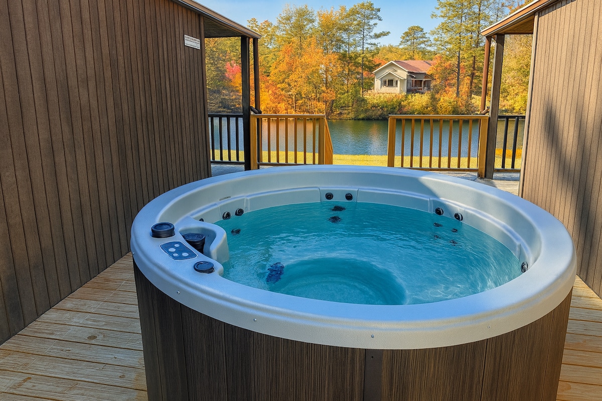 Gone Fishin Cottage: vasca idromassaggio, lago