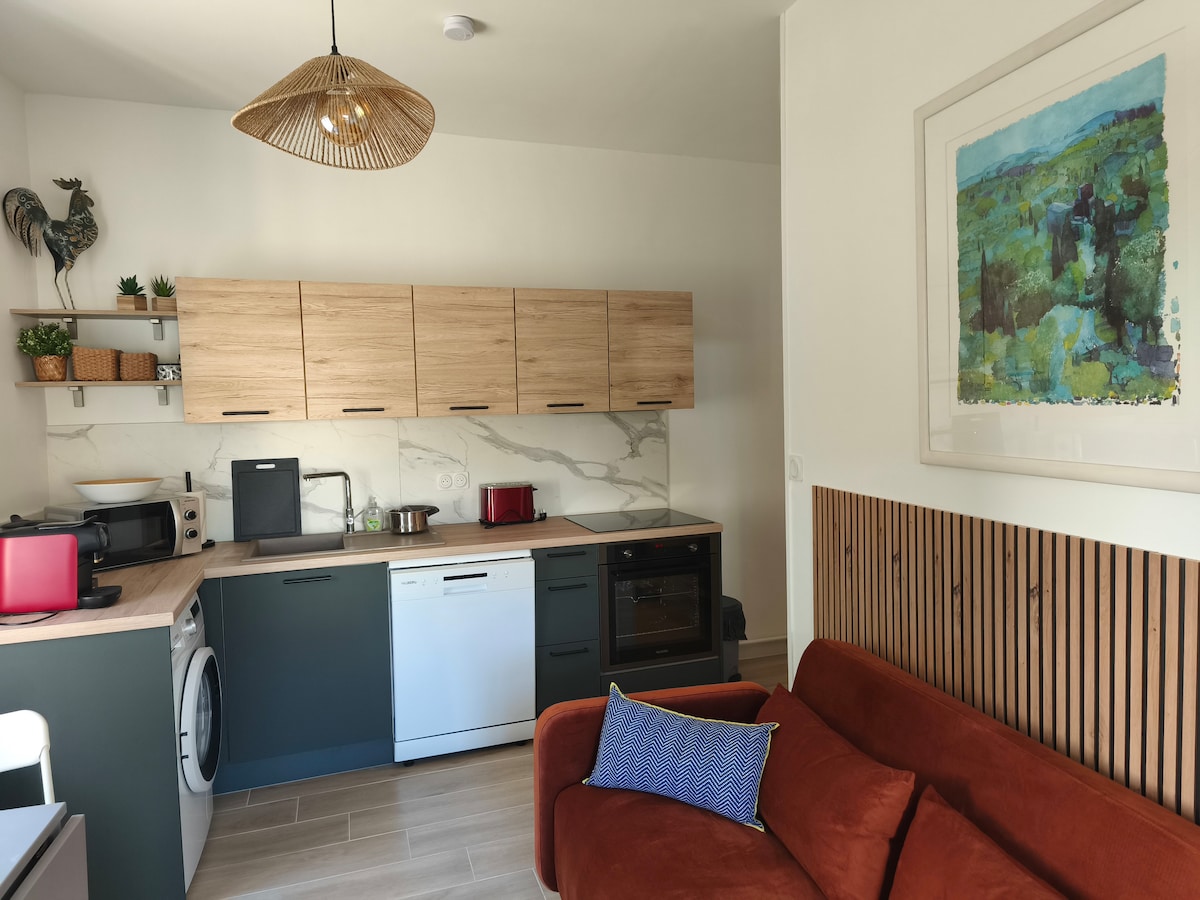 Appartamento ristrutturato di 50m2 al piano terra della nostra casa (dove viviamo) ma indipendente, ha accesso diretto al nostro giardino e alla nostra piscina( da condividere). A 5 minuti dalla A6, ideale per una sosta rilassante a Calade come punto di partenza per la scoperta del paese del Beaujolais: i suoi paesaggi, la sua gastronomia, le escursioni, a 800 m dal complesso sportivo l'escale... o per scoprire le ricchezze circostanti: Lione, Dombes, Mâconnais. L'alloggio è per 4. Niente feste, fidanzamenti, compleanni, matrimoni...