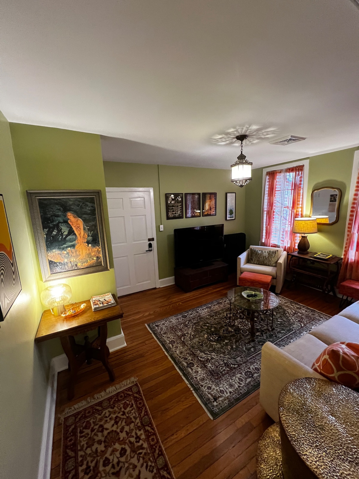 Goditi questo elegante appartamento situato nel cuore del quartiere storico del centro. Situato all'interno di una splendida villa nota come The Grand Delphey, con camere condivise al primo livello, perfette per sessioni fotografiche o riunioni. L'unità può essere affittata con altre 3 unità per ospitare fino a 16 persone! Non esitare a contattarci nel caso in cui volessi prenotare l'intero palazzo per feste di matrimonio o altri eventi. A pochi passi da location per matrimoni, Baker Park, il torrente, la vita notturna del centro e i negozi!