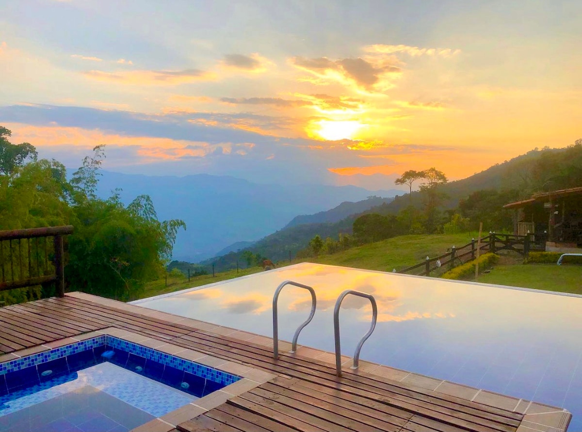 Finca El Cielo a Fredonia Antioquia, a solo 1 ora e 25 minuti da Medellín, questa bellissima e accogliente tenuta ricreativa è circondata da una natura stimolante e da un paesaggio affascinante. È un posto tranquillo con mangiatoia e cavalli. Ha una piscina e vasca idromassaggio in cui si può godere dei tramonti spettacolari. Il suo clima caldo durante il giorno e un po' più freddo di notte è perfetto per godersi, dormire e riposare in pace.