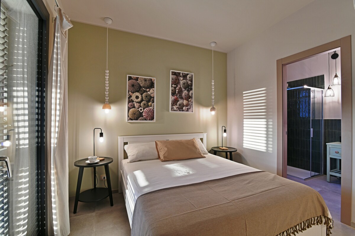 Innamorati dell'attenzione ai dettagli di questo elegante alloggio. Camera I RICCI è una camera con letto matrimoniale e bagno privato. Accogliente, climatizzata, luminosa e con una piccola verandina privata. Uso cucina e piscina in comune. La villa è su una collina quindi dona ai suoi ospiti il privilegio di una fantastica vista sulla costa e su tramonti meravigliosi.