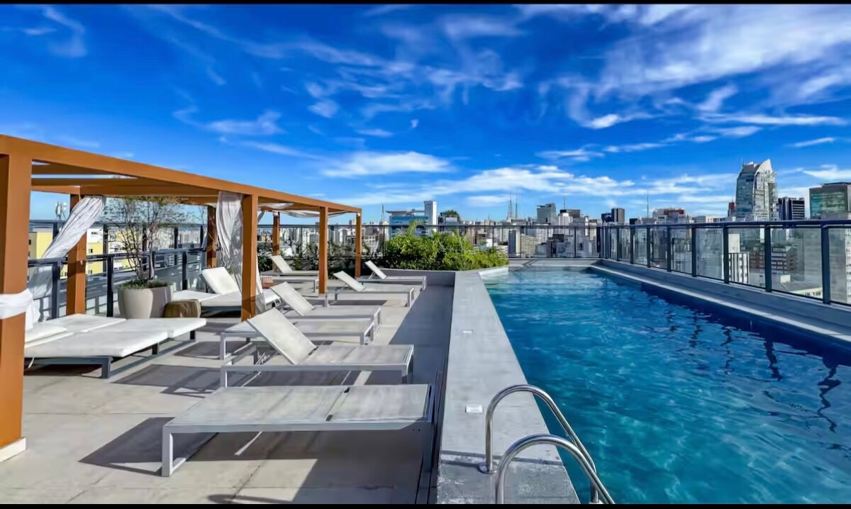 Monolocale di lusso progettato con cura per offrire comfort, stile e praticità nel cuore di San Paolo. Lo spazio dispone di una splendida piscina sul tetto con vista libera su San Paolo, design moderno, illuminazione accogliente, letto confortevole, cucina attrezzata, aria condizionata, Wi-Fi veloce e Smart TV. Situato a pochi passi da Avenida Paulista, dalla metropolitana, dai ristoranti, dai caffè e dai centri commerciali, è ideale per chi cerca un soggiorno urbano sofisticato, sicuro ed estremamente ben posizionato.