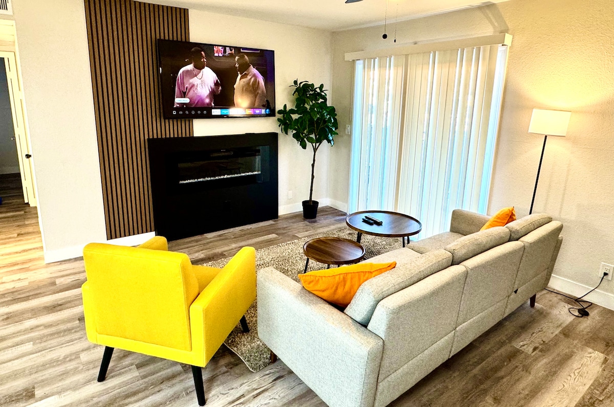 Questo accogliente appartamento con 1 letto e 1 bagno può ospitare 4 persone. È confortevole e ben arredato con un letto king size, un divano letto a grandezza naturale e un materasso singolo autogonfiabile, TV via cavo/Wi-Fi, smart TV da 65" nel soggiorno e smart TV da 55" nella camera da letto, posti a sedere sul balcone fuori dal soggiorno, camino a candele con telecomando e arredi moderni in tutto l'ambiente. Il parco offre due piscine, una vasca idromassaggio, doccia esterna, palestra, ingresso custodito 24 ore su 24, con parcheggio gratuito. Situato appena fuori dalla Strip, vicino ai casinò e altro ancora.