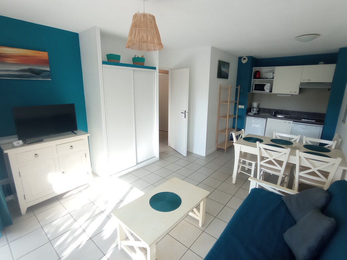 Venite a rilassarvi in tranquillità nel nostro nuovissimo T2 di 26m2. Situato tra le Landes e i Paesi Baschi, a 5 minuti dalla spiaggia e a 20 minuti dal confine con la Spagna. Vicino a tutti i servizi: Panetteria, Ipermercato, Cinema, Trambus... Alloggio composto da una cucina attrezzata con forno, piano a induzione, microonde, lavatrice ecc. Soggiorno, divano,TV e WiFi. Camera con letto matrimoniale, armadi e bagno. Parcheggio privato Giardino paesaggistico privato con terrazza salotto da giardino, plancha....