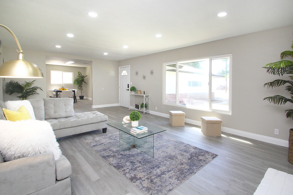 Ti diamo il benvenuto nel nostro splendido alloggio Airbnb nel North East Fresno! Questo gioiello nascosto contemporaneo offre stile e comfort. Riposa facilmente sul materasso ibrido in memory foam king-size o sul materasso in memory foam queen-size. Goditi la cucina di design completamente attrezzata, le smart TV e il wifi gratuito. Hai bisogno di lavorare da casa? Nessun problema! Qui trovi uno spazio ufficio. Ristoranti e mercati nel raggio di 1,6 km. Woodward Park, a soli 5 minuti di distanza. Parco nazionale di Yosemite, a 1 ora e 15 minuti di distanza