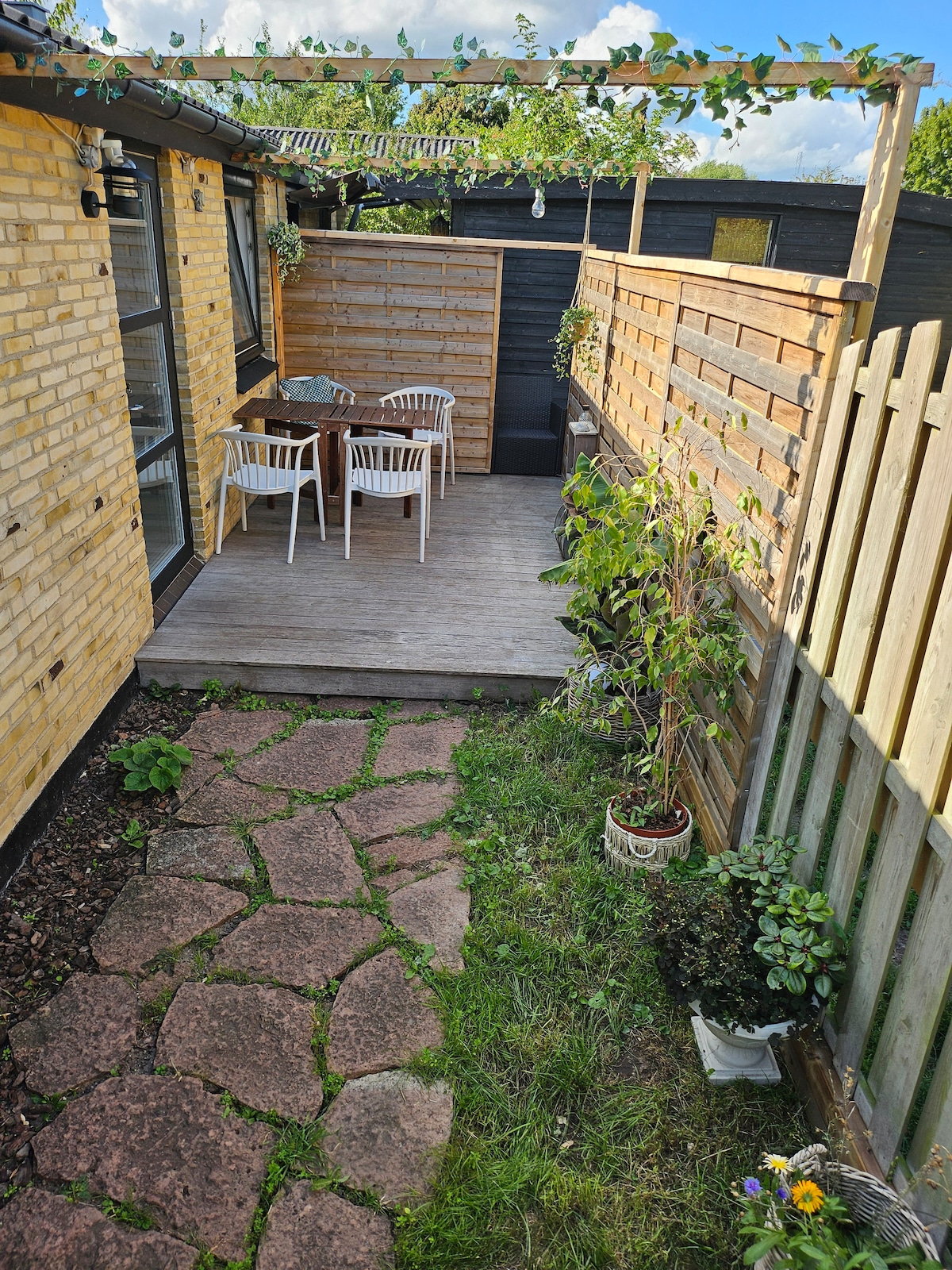 Casa su un piano a Hvidovre. La casa è stata divisa in 2 appartamenti. Avrete a disposizione circa 50 m² con ingresso privato e parcheggio. Il tuo appartamento è dotato di una grande stanza luminosa con letto matrimoniale, una stanza più piccola aggiuntiva con 2 buoni letti e un bel bagno con lavatrice. L'ingresso è molto spazioso, piccola cucina con zona pranzo per 2 - 4 persone, piccolo frigorifero, 2 fornelli, forno a microonde, friggitrice ad aria, macchina del caffè, tostapane. Una splendida terrazza con tavolo e sedie. Abbiamo anche 2 biciclette a uso gratuito:0)
