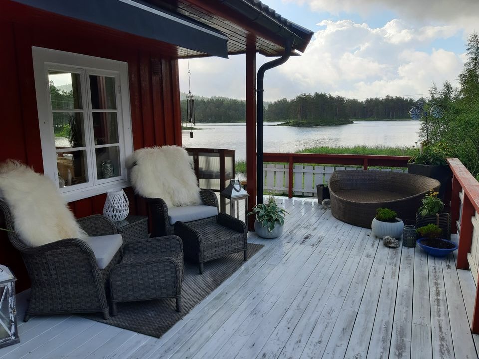 Il cottage è dotato di un accogliente soggiorno con vista spettacolare, una cucina completamente attrezzata e una spa dove potersi rilassare dopo una lunga giornata. Ci sono due camere da letto con letto matrimoniale e un soppalco con quattro buoni materassi. Inoltre, c'è un lettino per bambini. All'esterno, ti aspetta una grande terrazza dove potrai goderti la vista mozzafiato. Il cottage è circondato da una natura lussureggiante con possibilità di escursioni nella zona, e dal lago appena sotto il cottage si può navigare, pescare e nuotare. È possibile noleggiare una barca con motore elettrico. SUP e canoa sono gratuiti.