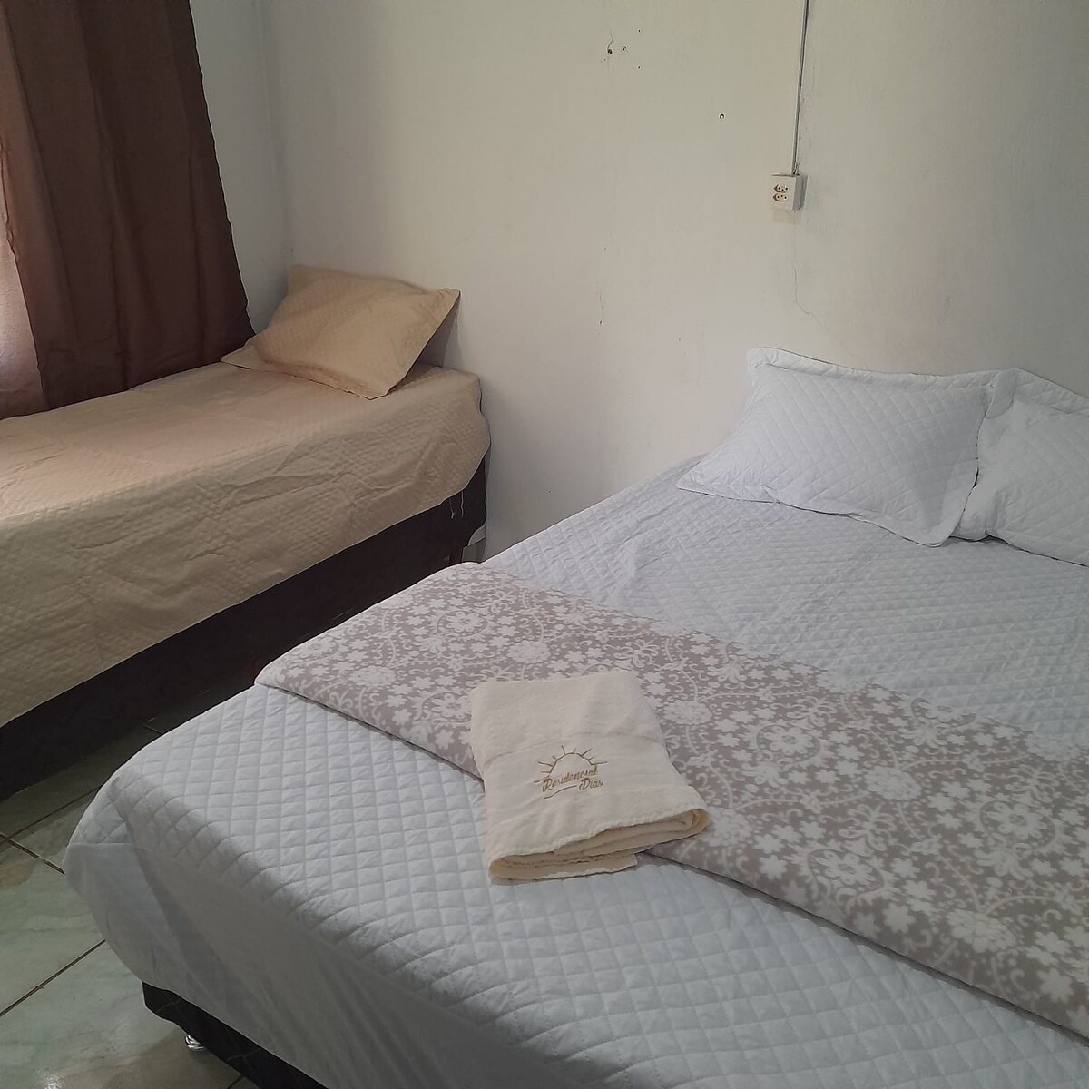Il Morada do Bosque è uno spazio accogliente e arioso, con due camere da letto, una con letto matrimoniale e aria condizionata, e un'altra con due letti singoli e ventilatore a soffitto. Il soggiorno è dotato di TV, ventilatore a soffitto e divano letto. La cucina è dotata di depuratore d'acqua, frigorifero, piano cottura e utensili di base. C'è un garage per 2 auto (senza copertura) e un ampio balcone con cortile. Situato in un quartiere tranquillo, vicino al viale, supermercato, bar e caffetteria. Biancheria da letto inclusa.