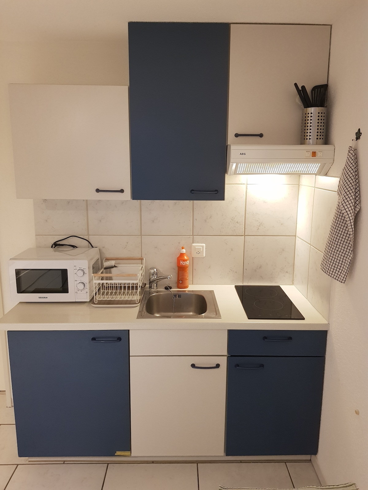 Camera con ampia terrazza. Cucina: cucina completamente attrezzata con lavastoviglie, piano cottura, forno a microonde, forno e macchina per il caffè. Le bevande sono gratuite per te. -Zona giorno: divano letto. Wi-Fi gratuito, grande Smart TV -Bagno: ampio WC con doccia e grande specchio. -Illuminazione: suggestiva illuminazione a LED La camera ti offre la perfetta combinazione di comfort e relax nel tuo stile. Ideale per coppie (+ bambino), viaggiatori singoli o uomini d'affari