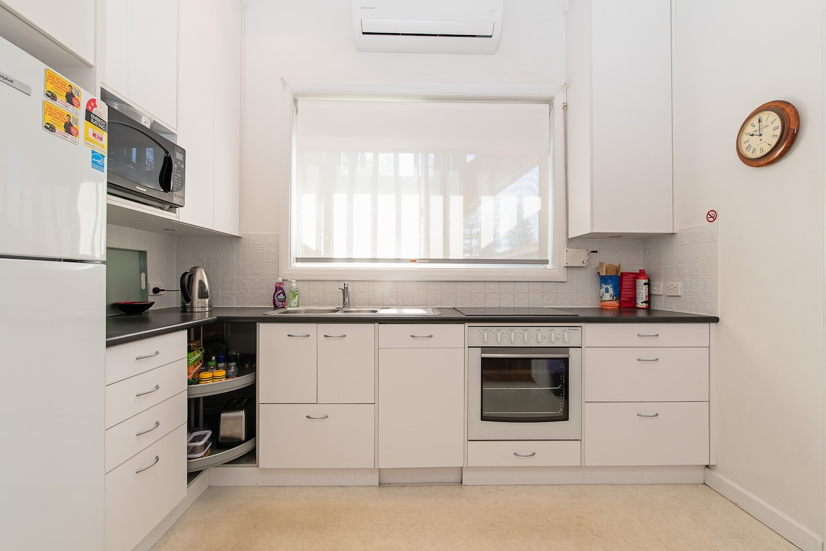 Siamo vicini all'aeroporto, grandi spiagge, trasporti pubblici, ristoranti/ristoranti, vista aperta. Amerai i nostri letti super comodi, la biancheria pulita e di qualità, i posti a sedere all'aperto sulla veranda, il salotto spazioso (fuoco a gas e FOXTEL), il grande bagno, l'angolo cottura (piccolo frigorifero, forno a microonde, tostapane, bollitore) e il quartiere sicuro. Siamo ideali per coppie, avventurieri solitari, viaggiatori d'affari. Il tuo posto è la metà anteriore della nostra casa - separata da porte comunicanti. Saremo sul posto, magari con un levriero in affido.