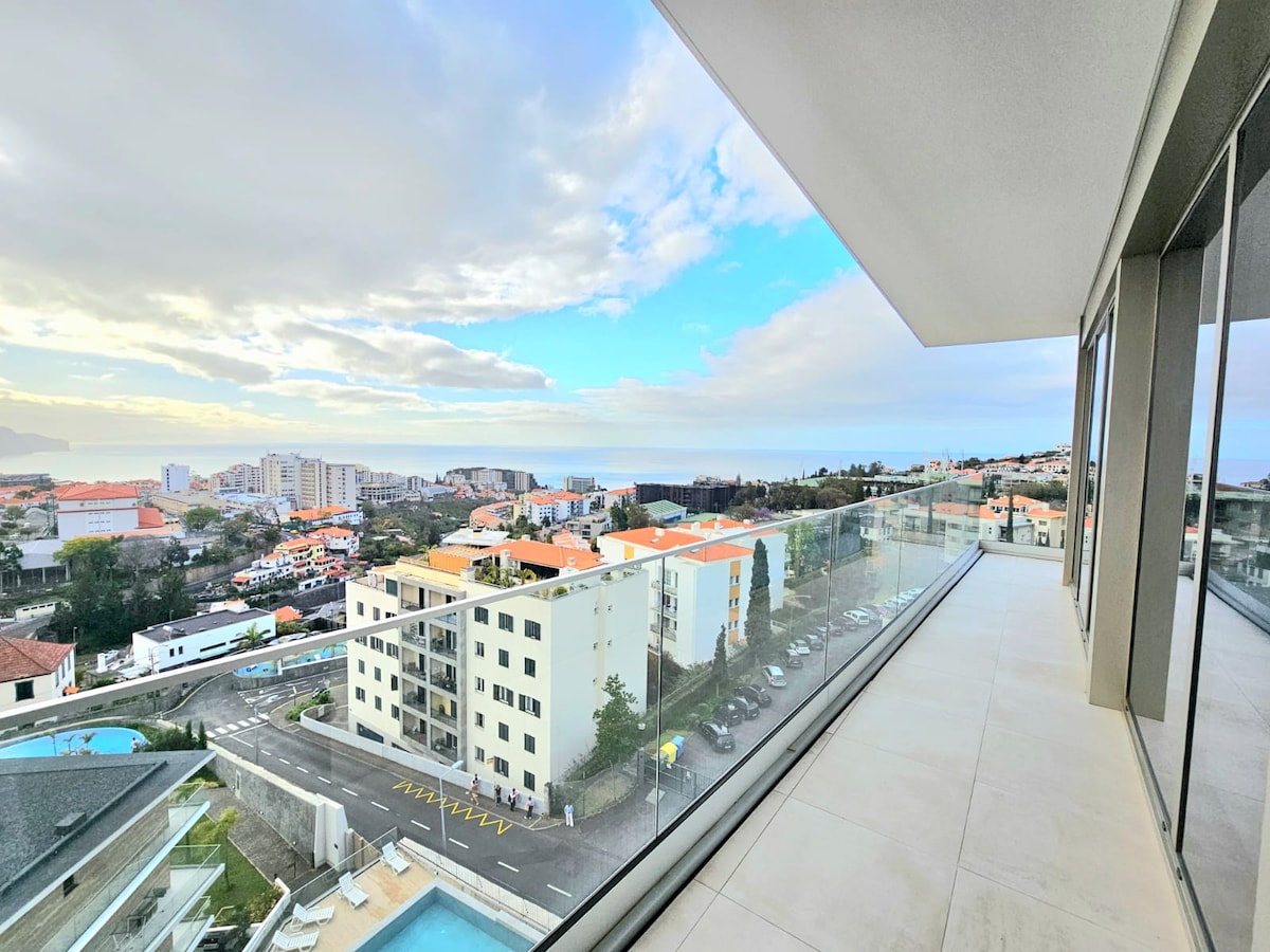 Moderna vista sull'oceano, terrazza e parcheggio, vicino a Funchal