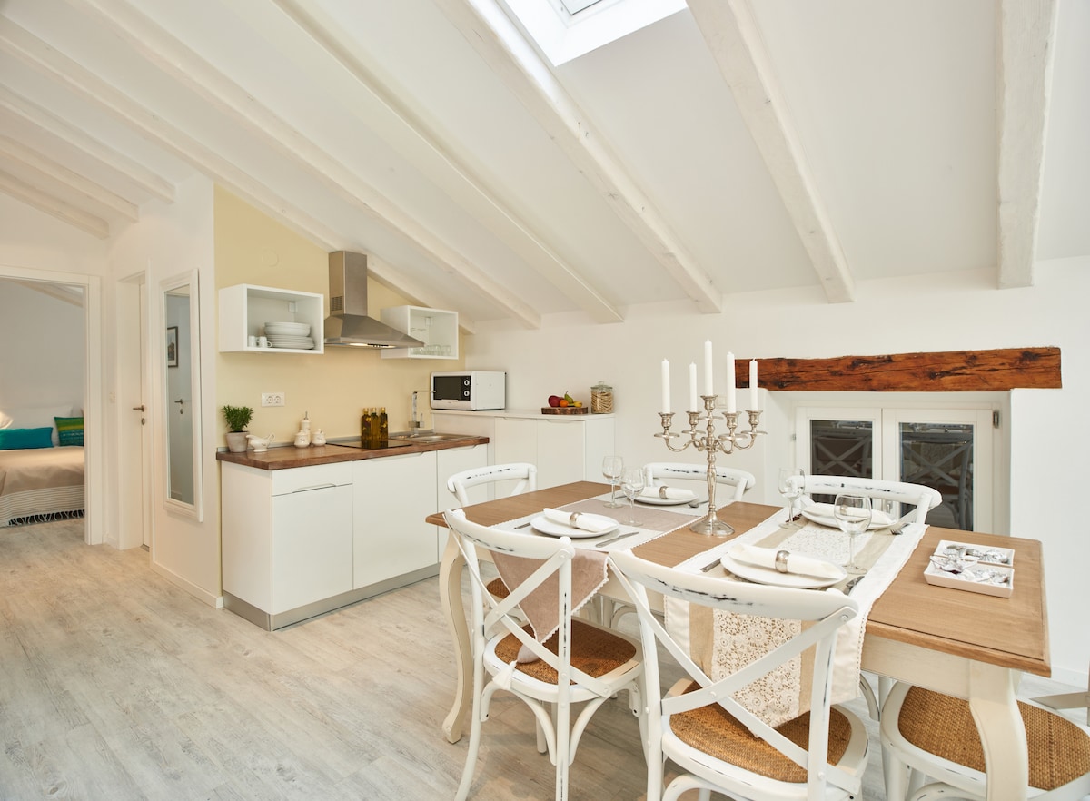 Appartamento MAR con Vista Mare si trova nel centro della città di Rovigno-zona pedonale, con il centro storico a due passi e le spiagge a 5 minuti a piedi, pronte per essere esplorate. L'appartamento offre una splendida vista sul mare e sulla città, sia dalle numerose finestre del soggiorno che dalle finestre del tetto apribile. Arredato con una cucina completamente attrezzata, lavatrice, TV, aria condizionata, WiFi, questo appartamento è ideale per coppie o famiglie per trascorrere le vacanze.