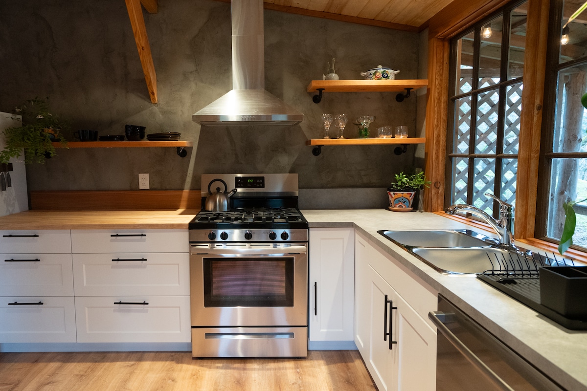 Goditi una vacanza all'insegna dello stile in questo chalet in centro a Upper Gibsons. La Cosmic Cabin è uno spazio con 1 camera da letto recentemente ristrutturato, all'interno della nostra proprietà di 2,5 acri su Reed. La baita è una casa super funky, privata e rilassata lontano da casa. A pochi passi da tanti servizi: trasporti pubblici, Gibsons Park Plaza, Sunnycrest Mall, Persephones e tutti i ristoranti e negozi lungo la 101 Highway. Goditi il soggiorno nella nostra Cosmic Cabin immersa tra gli alberi!