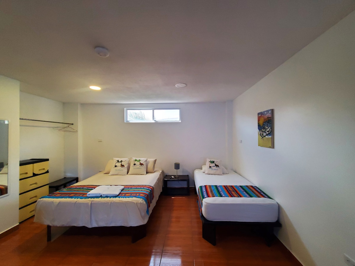 Relax in this unique and peaceful getaway! Located in the Galápagos Islands, one of the most beautiful places on the planet, our accommodations offer ultimate comfort tailored to your needs. Choose between a king-size bed or two twin beds, adjusted to your personal preference. The room features a private bathroom, desk, and mini-fridge. Enjoy open spaces with a pool, ensuring your visit to the Galápagos is truly unforgettable.