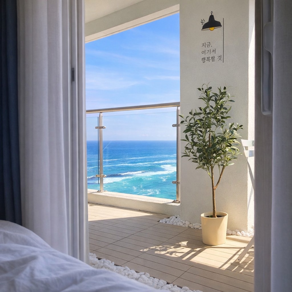 Soggiorno Ocean a Gangneung #Tripla con vista sull'oceano#Netflix#3 stanze#Ammirate l'alba dal letto