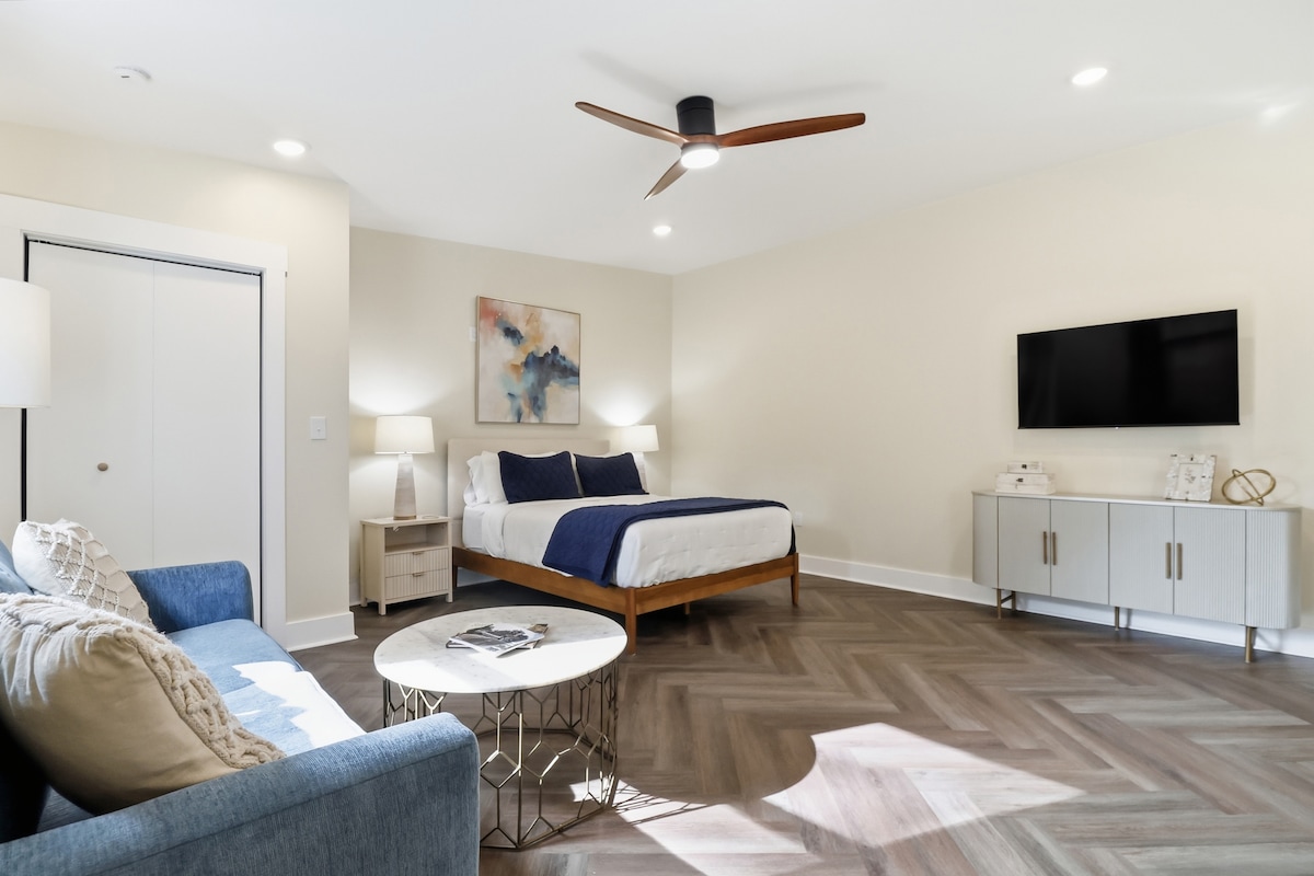 This large bedroom is attached to our home but completely blocked off & private! It features coffee bar, fridge & microwave. A renovated bathroom with huge shower with built in Bluetooth speaker. Tons of space to hang clothes. Bedroom opens up to private deck, patio set, charcoal grill, & fire pit. Private entrance through sliding glass door. -POOLER- Many shops & restaurants nearby 5min from i95 10min from sav airport 15min from downtown Sav 45min from Tybee island