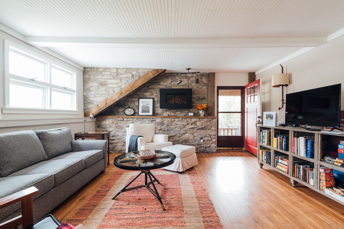 Situato su una strada privata circondata da alberi ad alto fusto, The Chalet è una casa con tre camere da letto e tre bagni, a pochi passi da tutte le principali attrazioni delle Catskills e della Hudson Valley. Perfetto per un weekend fuori porta o un soggiorno prolungato, e ideale per coppie e famiglie. La casa ha tre livelli, ognuno con la propria camera da letto, bagno e area comune. Rilassati vicino al focolare, sorseggia il caffè del mattino sul ponte, leggi un libro nel loft o fai una passeggiata nei boschi.