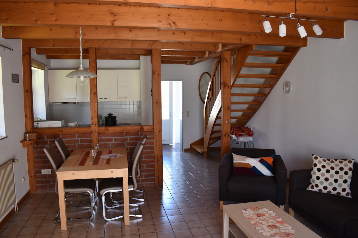 Una nuova scala in rovere con un alto ingresso conduce agli appartamenti ristrutturati. L'appartamento n. 2 è perfetto per una piccola famiglia di quattro persone. Grazie alla nostra cassaforte per le chiavi è possibile anche arrivare molto tardi. La biancheria da letto e 2 asciugamani a persona, nonché una dotazione generosa sono a disposizione.