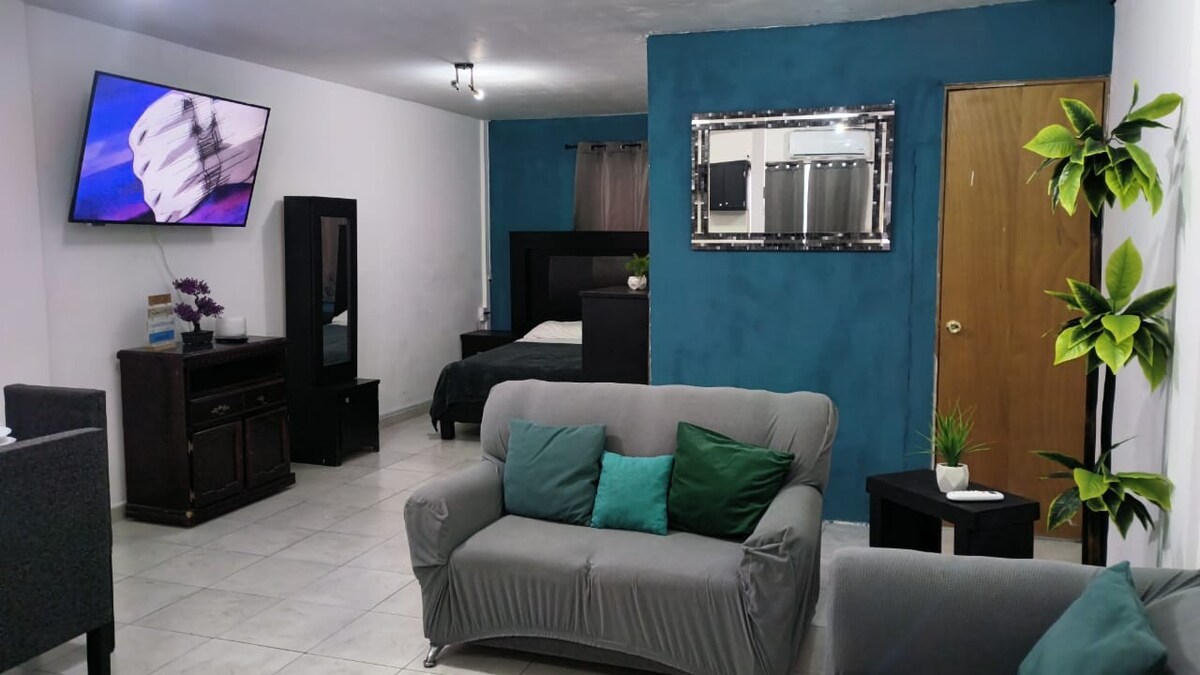 Loft spazioso, moderno e attrezzato situato nel cuore di Monterrey. 🍽️ ☕️ - Cucina attrezzata con padelle, pentole, friggitrice ad aria, macchina per il caffè (caffè americano, decaffeinato e tè), utensili da cucina, ecc. 🛏️ - Letto matrimoniale, lenzuola e biancheria da letto pulite 🛋️ - Comodo divano letto ❄️ Mini Split con aria condizionata e riscaldamento 📺 - TV 50”, Netflix, Prime, HBO e Cavo 🛁 - Bagno completo, asciugamani puliti, asciugatrice e articoli per l'igiene personale 👨💻 - Spazio di lavoro con scrivania e Alexa 🏪 - OXXO ✔️Molteplici servizi