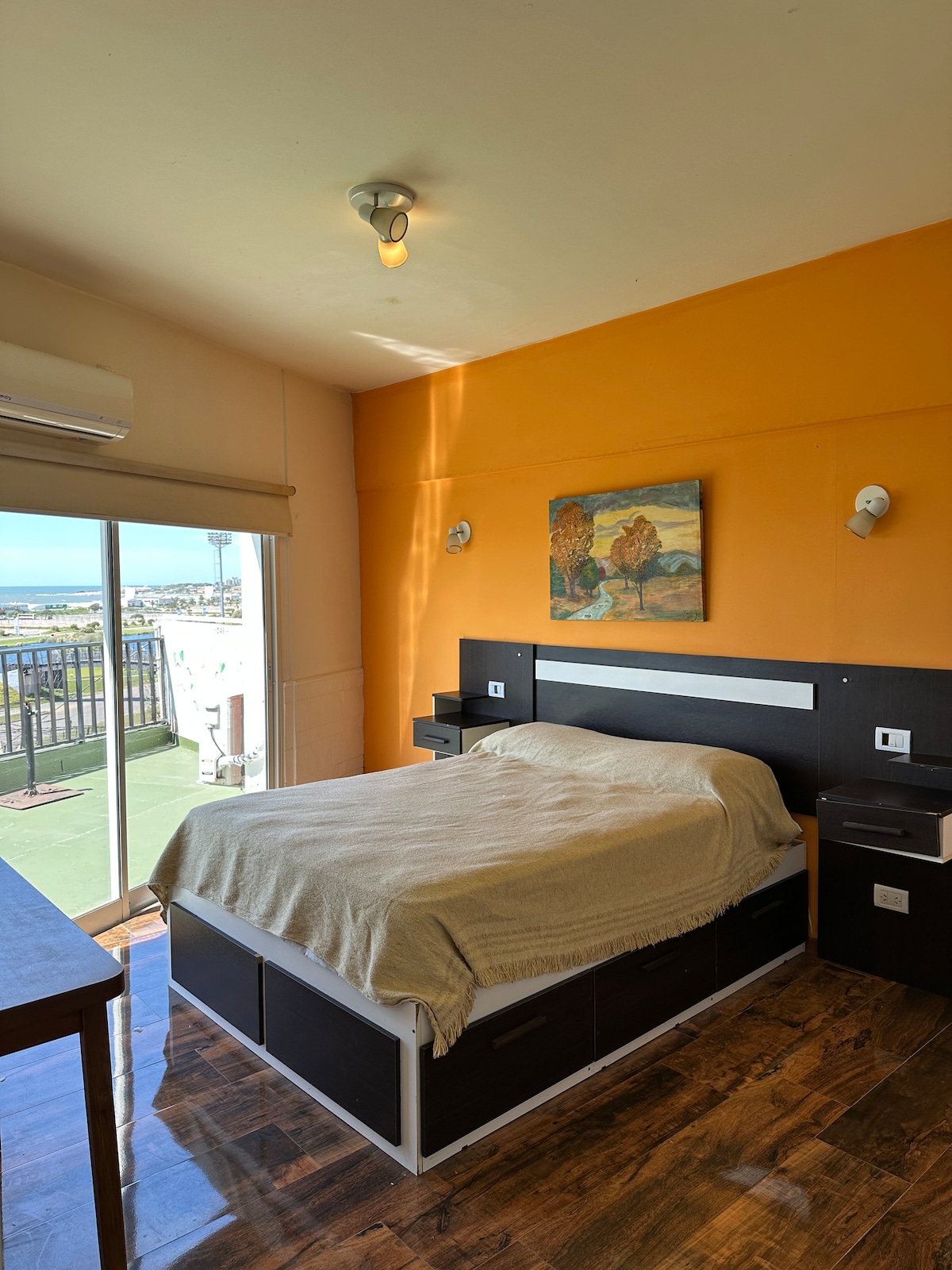 Ampio monoambiente (49 m²) in un nuovo edificio, con una stanza separata da una parete scorrevole. Possibilità di due letti singoli o materasso king size. Ha anche un divano letto. Molto luminosa, con vista sull'oceano, barbecue privato, lavatrice e cucina completa con macchina per il caffè. La biancheria è inclusa. Riscaldamento tramite lastra radiante e ottima ventilazione. Smart TV via cavo e WiFi 200 megabyte. Magazzini, fruttivendolo e farmacia a meno di 100 metri. A tre isolati dalla via dello shopping di Pato e Puan