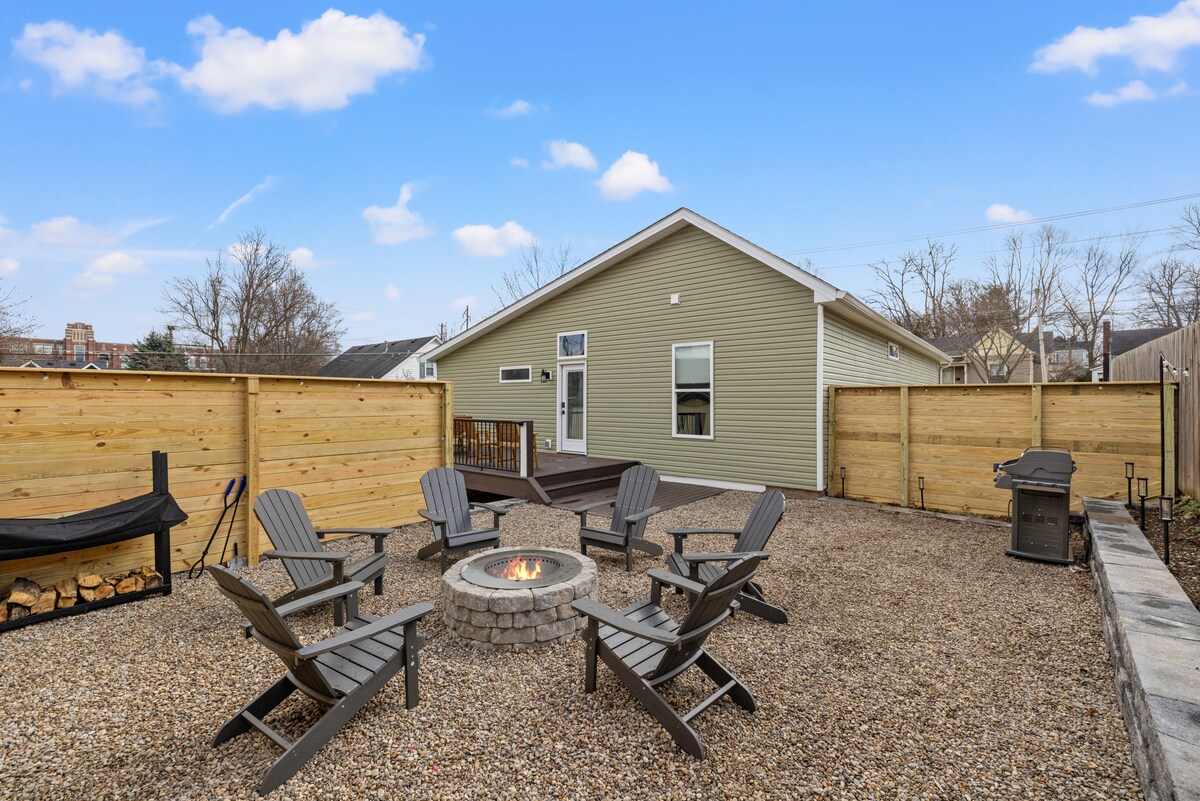 ✨ Glow Hill: divertente soggiorno in un alloggio con 2 camere da letto vicino al centro di Georgetown 🛏️ Letti queen size, smart TV, TV Roku da 75" e enorme poltrona pouf da 2 metri 🎮 Giochi arcade e console per le serate in casa 🛁 Patio privato con gazebo, vasca idromassaggio gonfiabile e luci a LED ⚡ Wi-Fi veloce, spazio di lavoro, cucina completa, lavatrice/asciugatrice 🔥 Braciere, cortile completamente recintato, self check-in facile, parcheggio gratuito 👶 Adatto alle famiglie con box, vasca per bambini e giocattoli 🚗 13 min per Horse Park • 30 min per Ark Encounter