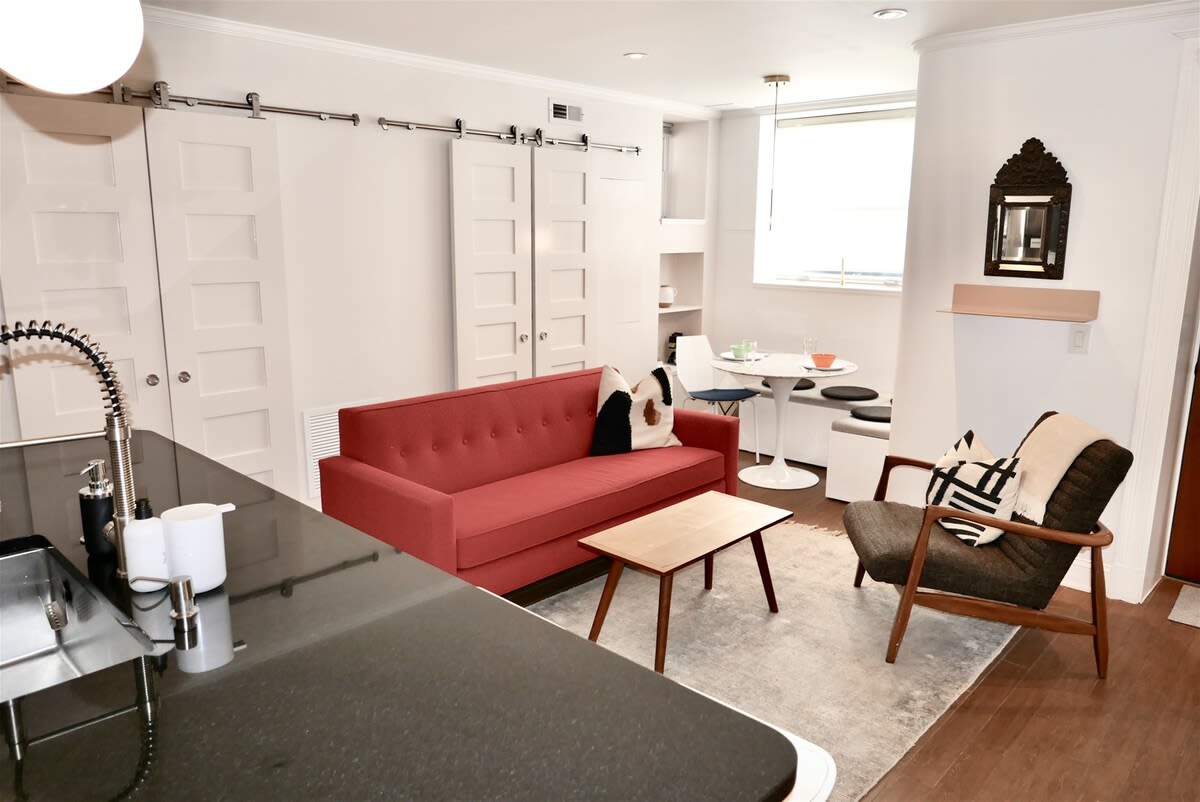 Professionally decorated, in one of the most sought after neighborhoods in DC. Easy access to everything, on a very quiet street in Georgetown. This street level unit is only used for corporate rental or short term stays. Hardwood floors, full service kitchen with dishwasher, cooktop and full size oven, workable wood burning fireplace are just a few of the features of this classy mid century style unit. Should this place not be available, the upper unit of this two story house is also on airbnb.
