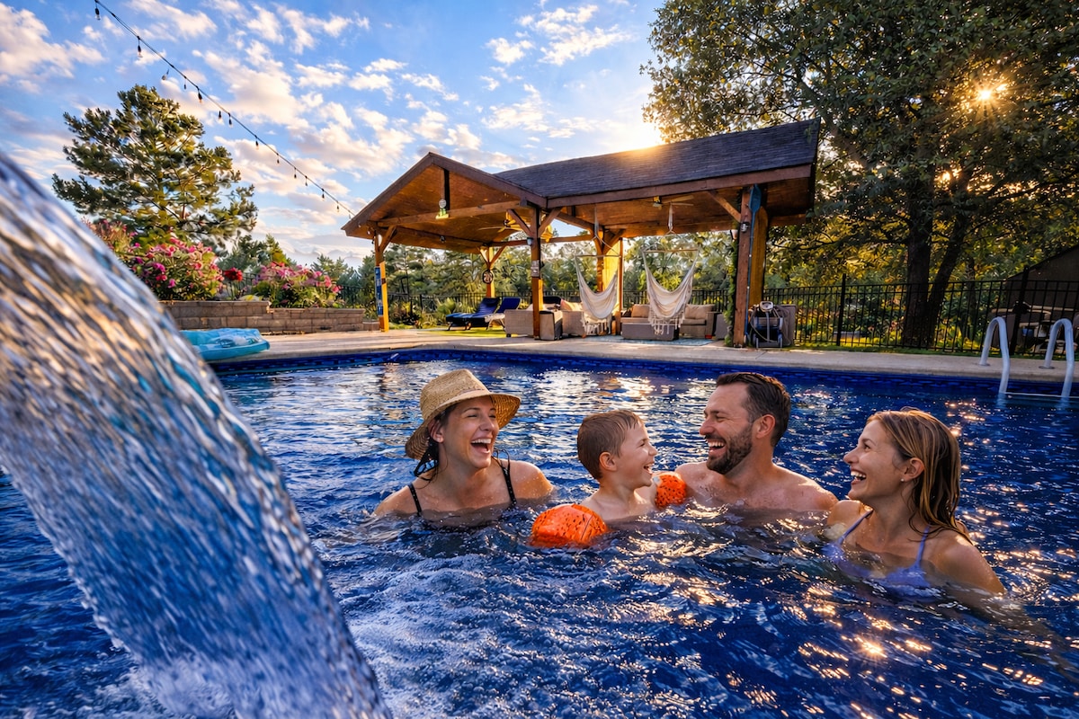 Bigfoot Cabin: piscina, sauna, vasca idromassaggio, sala giochi, campo