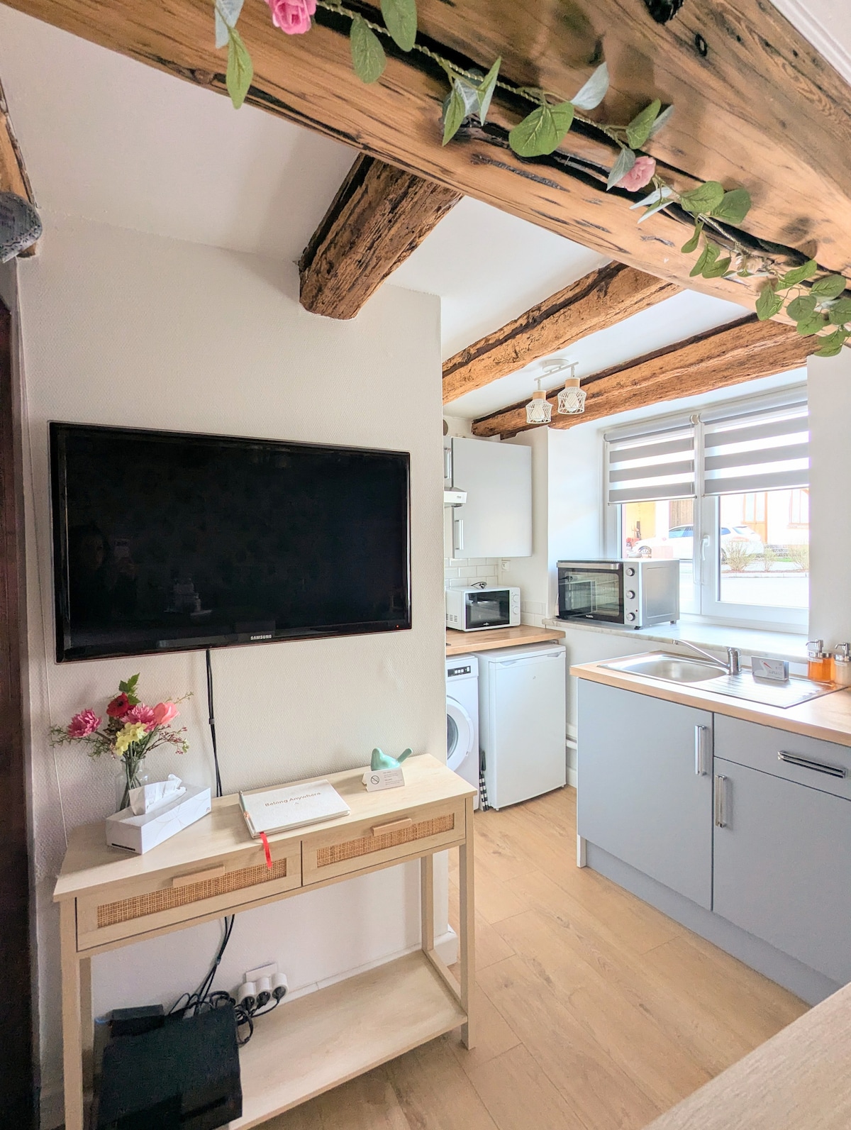 Questo incantevole monolocale di 20m2 ristrutturato nel 2022 si trova nel villaggio di Gertwiller, a pochi metri dai musei del panpepato (Fortwenger e LIPS), nonché dai vigneti. L'appartamento si trova al piano terra di una tipica casa alsaziana, con soffitti bassi, che un tempo ospitava una vecchia fucina. È completamente attrezzato e vi accoglie in un'atmosfera accogliente. Ci sono posti auto gratuiti sulla strada (non c'è un posto auto riservato allo studio nel residence)