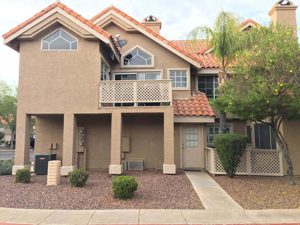 Accogliente appartamento situato vicino al cuore di Mesa. Vicino a ristoranti🍔, negozi🛍️ ⚾️, stadi di baseball e varie attrazioni. Completamente arredato, con 2 camere da letto, OGNUNO con un letto a due piazze, cabina armadio e bagni vicini. La cucina è completamente attrezzata per cucinare e dispone di una piccola zona pranzo. Piccola lavatrice/asciugatrice. Accesso a HBO Max e Hulu. Piccolo patio semi-coperto. I visitatori avranno anche accesso alla piscina e alla vasca idromassaggio della comunità. Adatto agli animali domestici per cani di piccola taglia🐕.