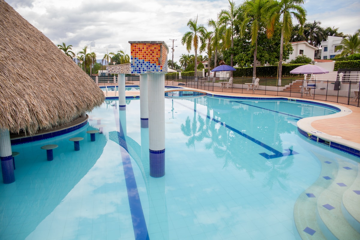 Goditi i tuoi giorni liberi in un appartamento confortevole, spazioso e impeccabile. Condominio Hacienda La Estancia Campestre. Dotato di stoviglie complete, barbecue a gas, amache, chiosco con tavolo da ping-pong e WiFi. Piscina a soli 10 metri dalla casa, utilizzabile fino alle 21:00. Accesso a 6 piscine più uno scivolo, supermercato, cappella, ristorante, campo da golf, campi da tennis, calcio e palestra all'aperto. Il posto ideale per rilassarsi e divertirsi con tutti i comfort!