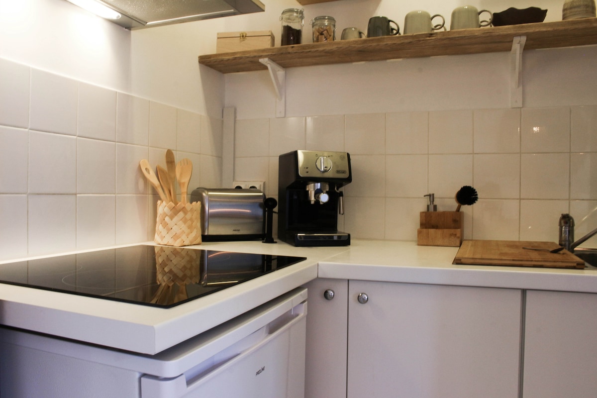 Fuggi dalla frenesia e goditi un soggiorno tranquillo a Giverny. Accogliente monolocale a soli 10 minuti a piedi dal Giardino di Claude Monet e dal Museo degli Impressionismi. Rilassati nella luminosa veranda che si affaccia su un lussureggiante giardino naturale e goditi un interno arredato con cura ispirato a Monet, con libri e tocchi culturali. Comodo letto da 2 m, letto extra per un terzo ospite, angolo cottura completamente attrezzato e bagno con vasca per un soggiorno rilassante e culturale. Parcheggio gratuito in loco.