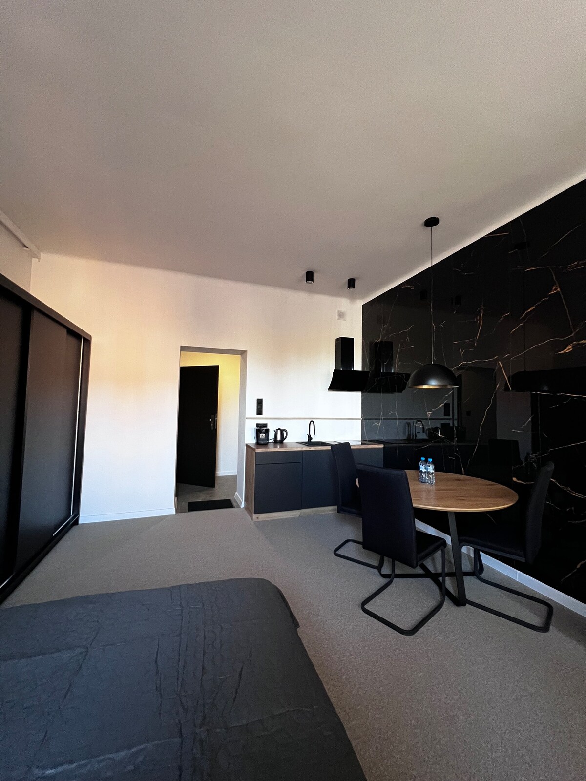 This is a studio apartment with independent entrance in a detached house. This house is located on a very pretty, quiet street at the wall of horse racing. A totally unique place. The apartment has an entrance hall, room, bathroom, mini kitchen, warderobe and a terrace. Very comfortable for 1 - 4 people. There is an extra payment of 10 euro for the third and fourth person as well as for the second one that needs a separate bed. For a dog the additional fee is 20 pln per day.