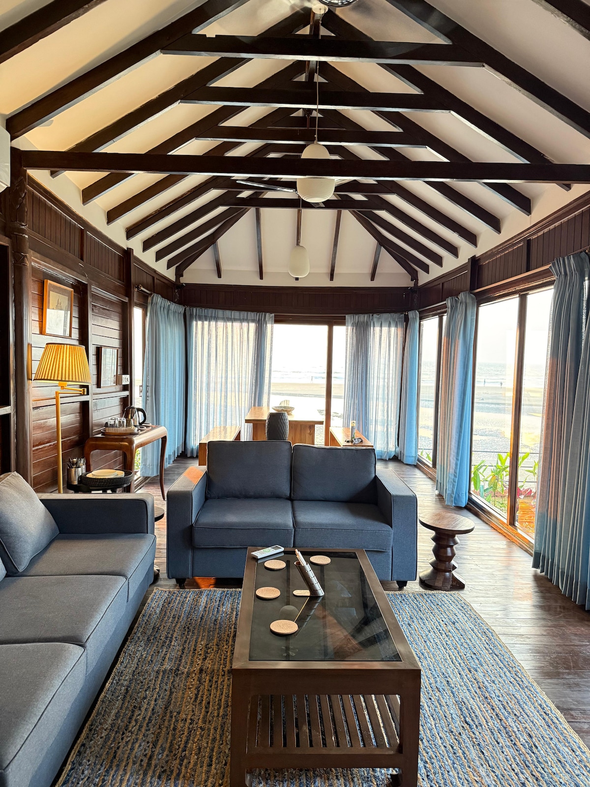 The beautiful 3BHK villa has been carefully designed to receive the soothing breeze of the ocean. It offers picturesque views of the expansive Arabian Sea worth waking up to. The 3 bedrooms include bathrooms and patios while the kitchen is fully equipped. Enjoy a calming session of morning yoga or a cheerful breakfast in the wide cosy courtyard. This stay has been fashioned and equipped for a group of maximum of 5 individuals and is secure and gated.