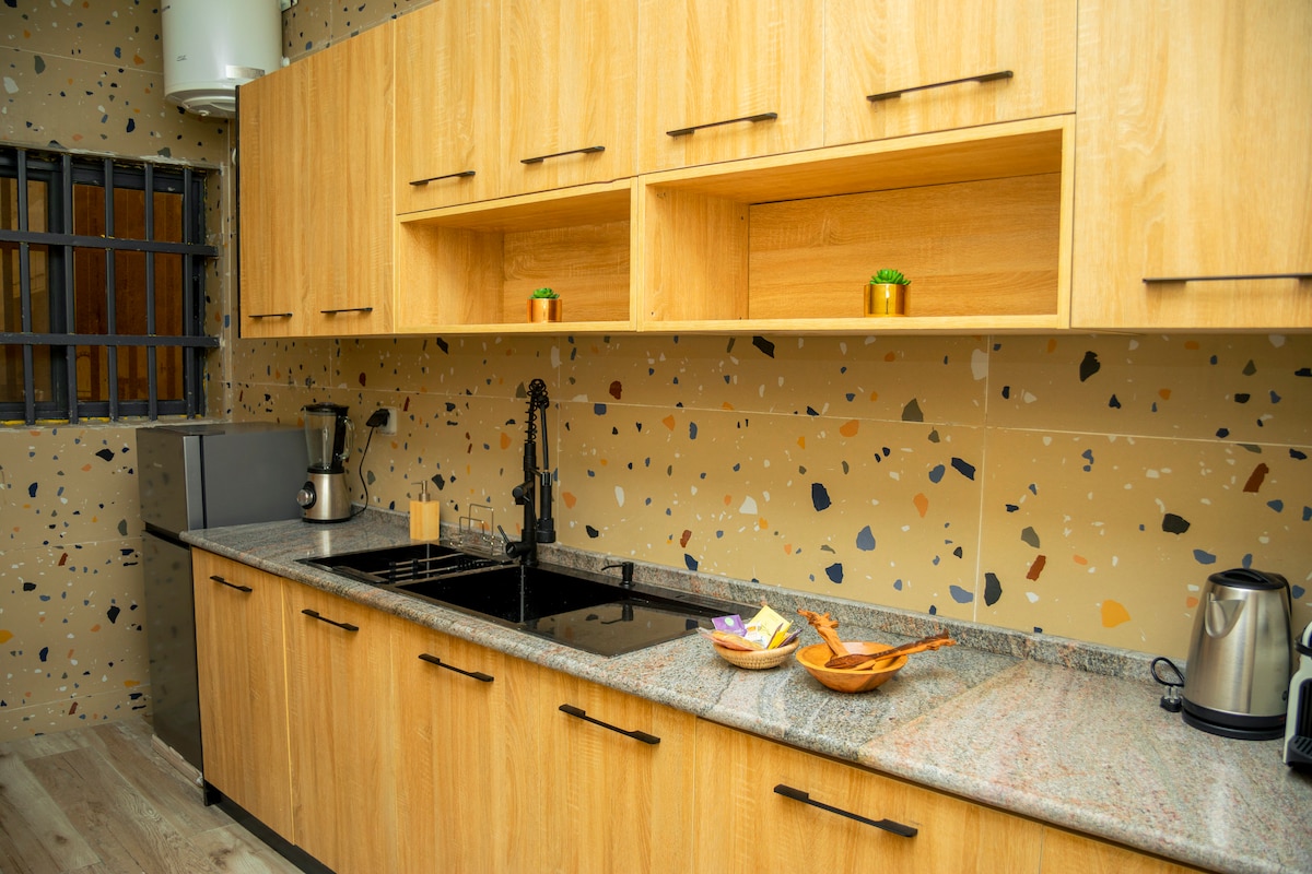 ★ Nous sommes ravis de vous proposer ce charmant Appartement 2 Pièces – Confort & élégance avec la fibre haut débit (50 Mbps) & lave-linge. Parfait pour un séjour agréable dans le calme et isolé des bruits . Profitez d’un salon lumineux, d’une chambre confortable et d’une cuisine équipée, idéal pour se sentir comme chez soi. Situé à Godomey Maria-gleta , ce logement vous offre un accès facile à la plage et attractions , à 5 min des voies pavées . Réservez pour une escapade inoubliable !