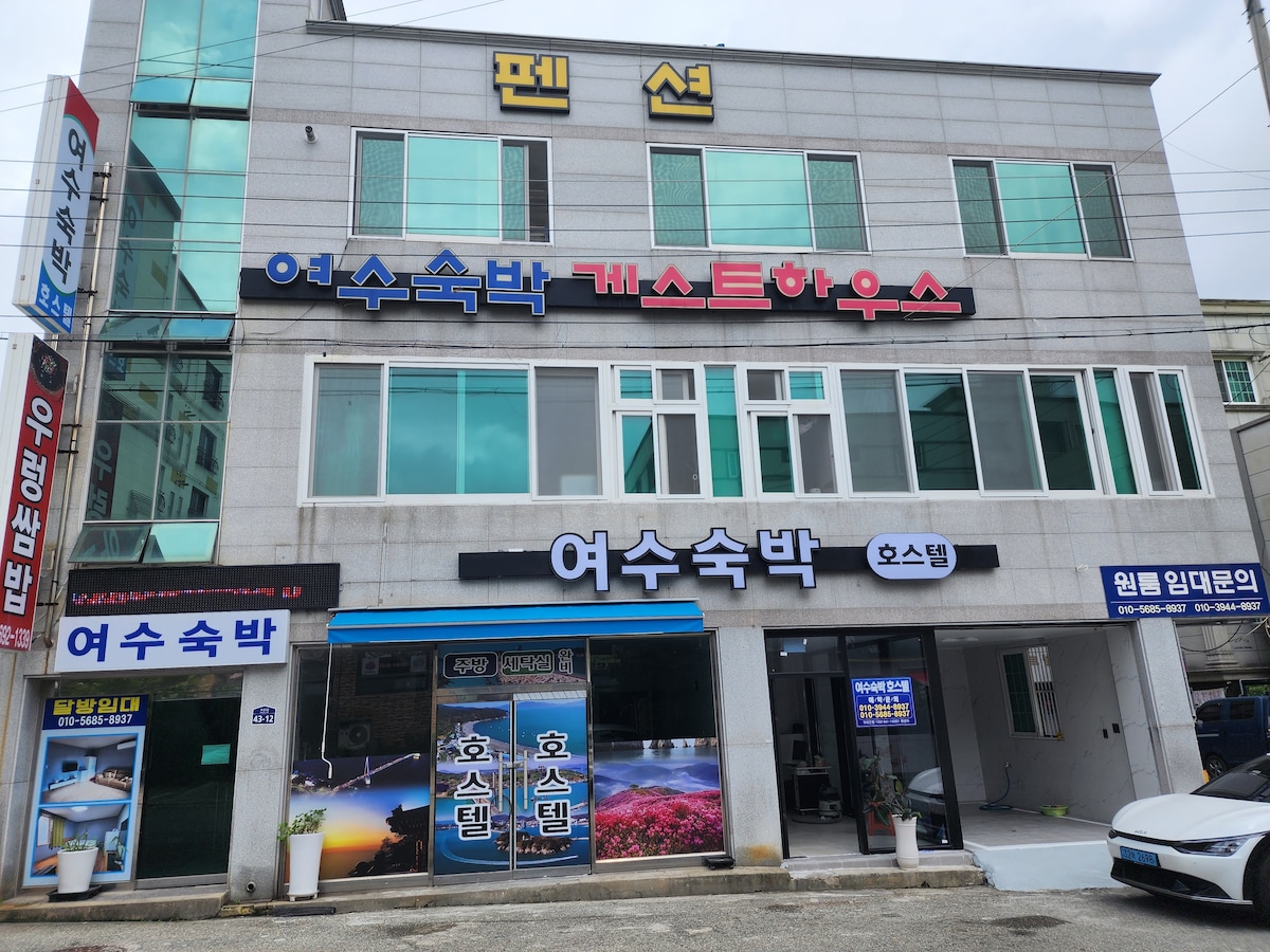 È la pensione più vicina alla funivia (20 pyeong), e c'è un GS25 (minimarket) dall'altra parte della strada, e c'è anche uno Starbucks.Yeosu Night Cruise Line si trova a 2 minuti a piedi dall'alloggio, quindi non è necessario utilizzare un'auto.È possibile scendere dalla funivia e raggiungere a piedi l'auto romantica in circa 5 minuti, quindi non è necessario utilizzare una macchina. Se si prende un taxi al ritorno, si arriva in circa 5.000 won.Si trova sulla strada principale, quindi è facile da trovare. Il prezzo si basa su 4 persone (fino a 10 persone) e altri 15.000 won a persona.Self-catering. Situato nel centro di Yeosu attrazioni turistiche. Facile da trovare sulla strada principale.1 km da Expo. 1 km da Gejang Alley. 5 km da Mansung-ri Beach. Tutti gli autobus passano davanti alla pensione.Dolsan Hoe Town si trova a 100 metri. Yi Sunshin Square si trova a 5 minuti con i mezzi pubblici o in auto.