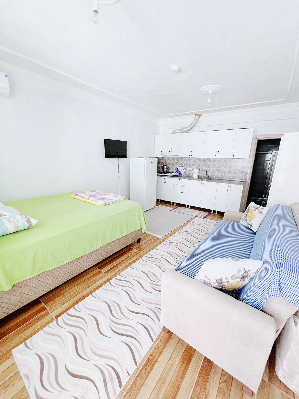 Si può andare sulle cime del piacere con il suo balcone dove si può fare colazione davanti alla magnifica vista mare. Nel nostro appartamento si può vivere il comfort ad alto livello con i nostri letti per 3 persone in ogni camera. Nel soggiorno ci sono 2 divani dove una sola persona può dormire (altre 2 stanze dove i bambini possono dormire), e in cucina sono abbondanti tutti gli strumenti e le attrezzature di cui potreste aver bisogno nella vostra casa. Sono presenti piccoli elettrodomestici come zero, piano cottura, frigorifero, lavastoviglie, caffè turco, exspresso mak, macchina per il tè, tostapane.
