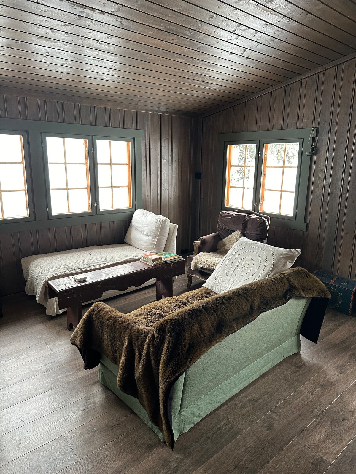 Piccola e accogliente camera da letto con letto a castello e divano letto (per un totale di 4 posti letto). La baita dispone di un piccolo frigorifero e 2 piastre elettriche. Tavolo da pranzo e sedie. Piccola stufa a legna, letto a castello e divano, che può anche diventare un letto per due persone. Servizi igienici e lavandino a 50 metri dalla baita. Purtroppo non è possibile fare la doccia. Ma Hallingdalselva non è lontana, se ti tenta. Standard semplici. Qui puoi goderti la vita semplice. Lenzuola e asciugamani, così come la pulizia, sono inclusi nell'alloggio! La baita ha il suo vialetto, parcheggio vicino alla baita.