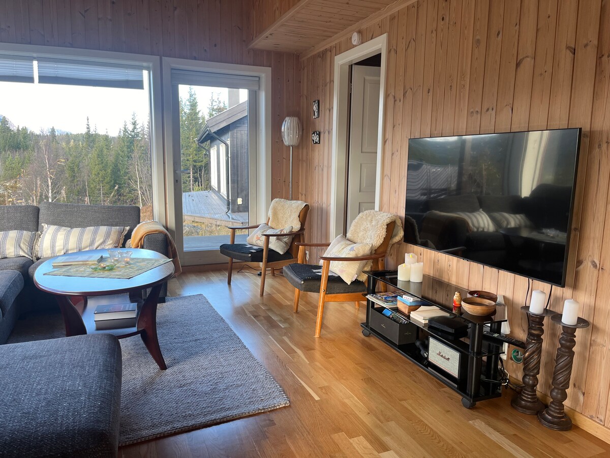 Ti diamo il benvenuto nel nostro accogliente chalet a Golsfjellet! Qui puoi goderti lunghe giornate con la famiglia e gli amici e poi rilassarti in veranda. La baita si trova in mezzo ai dintorni più belli della natura, con infinite possibilità: gite in montagna e in bicicletta, nuoto nei laghi di montagna e accesso alle piste da slalom. In inverno, le piste da sci sono a due passi dalla baita. Perfetto se cerchi tranquillità, attività ed esperienze di montagna. Ti diamo il benvenuto alla tua prossima avventura in montagna!🌲❄️