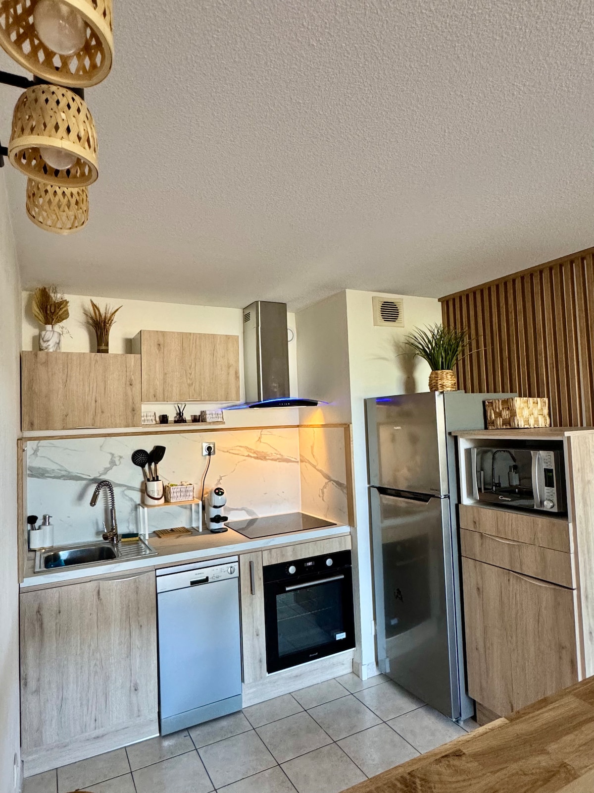 Per la stagione estiva 2025 l'appartamento sarà climatizzato!. Appartamento Cap d'Agde 32 m2-Vue mare eccezionale , diretto sulla pagina della grande conca senza dirimpettai. Ampio terrazzo 15 m2, lettini, tavolo e sedia, ombrellone. Parcheggio privato. Bilocale+cabina,ideale famiglia 4 persone. 1 camera da letto separata con letto matrimoniale (160 cm) e armadio, 1 cabina con due letti a castello, Ristrutturato a nuovo, ben attrezzato -3° piano con ascensore. Esposizione Sud Est. Molto tranquillo,al ritmo delle onde....